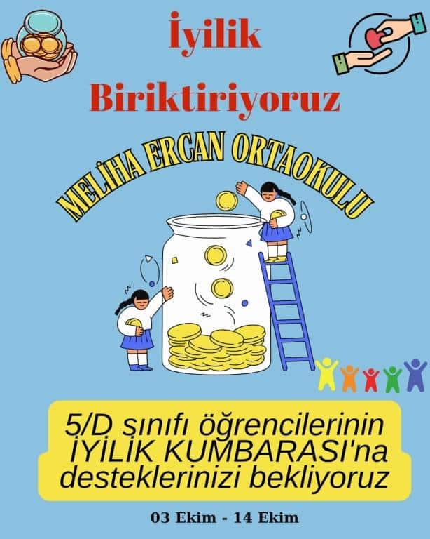 "İyilik Biriktiriyoruz " Projesi;Sosyal Bilgiler Öğretmenimiz Ebru Ateş KAZEL rehberliğinde 5. Sınıf Sosyal Bilgiler Dersi kapsamında okulumuzdaki/ilçemizdeki Şehit-Gazi-Yetim-Öksüz ve ihtiyaç sahibi çocuklarımıza destek amacıyla 5/D sınıfımız ile okulumuz özelinde bir yardımlaşma ve dayanışma çalışması başladı.14 Ekime kadar da devam edecek.Proje kapsamında Şehit/Gazi ziyareti de gerçekleştirilecek olup iyilik adına çıkılan yolda öğretmen ve öğrencimize hem en kalbi teşekkürler hem de başarılar diliyoruz.
